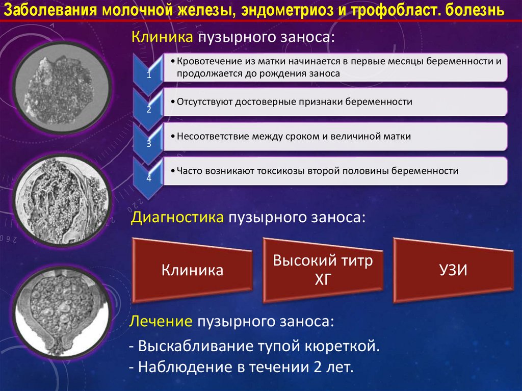 Заболевания молочной железы, эндометриоз и трофобласт. болезньКлиника пузырного заноса: