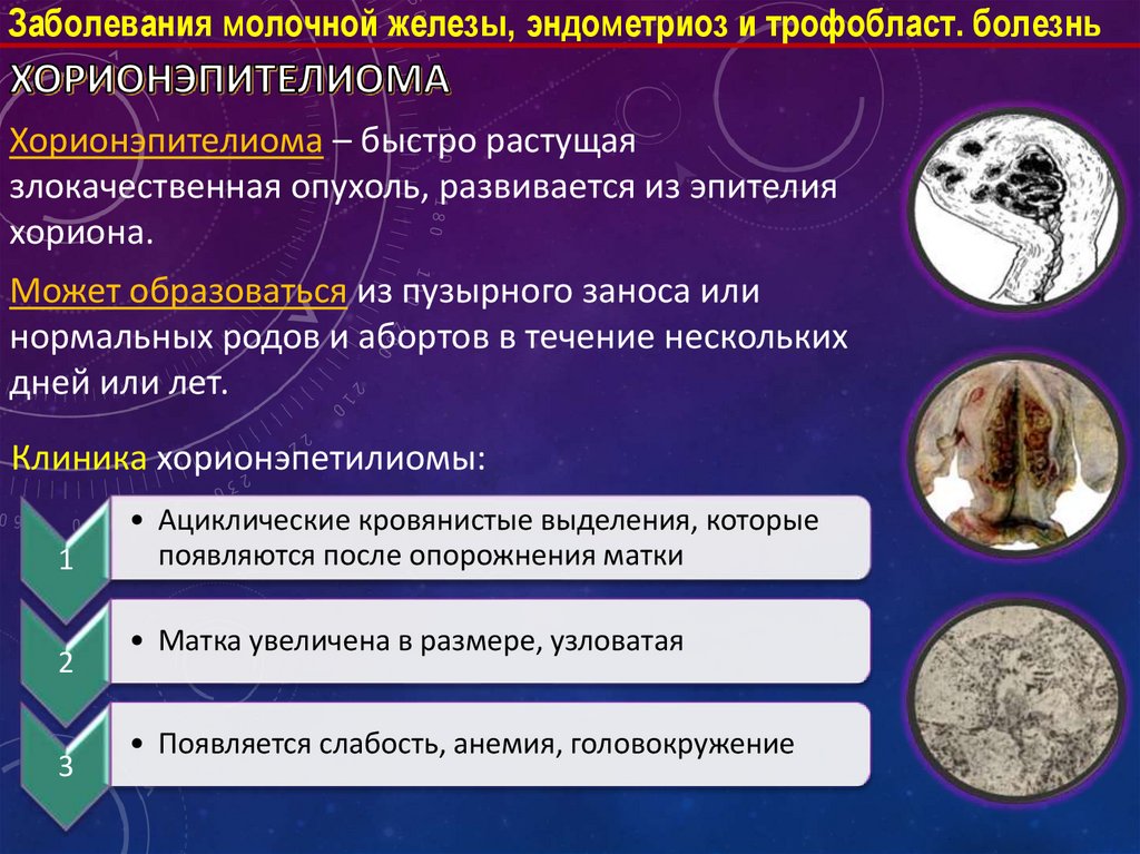 Заболевания молочной железы, эндометриоз и трофобласт. болезньХорионэпителиома – быстро растущая