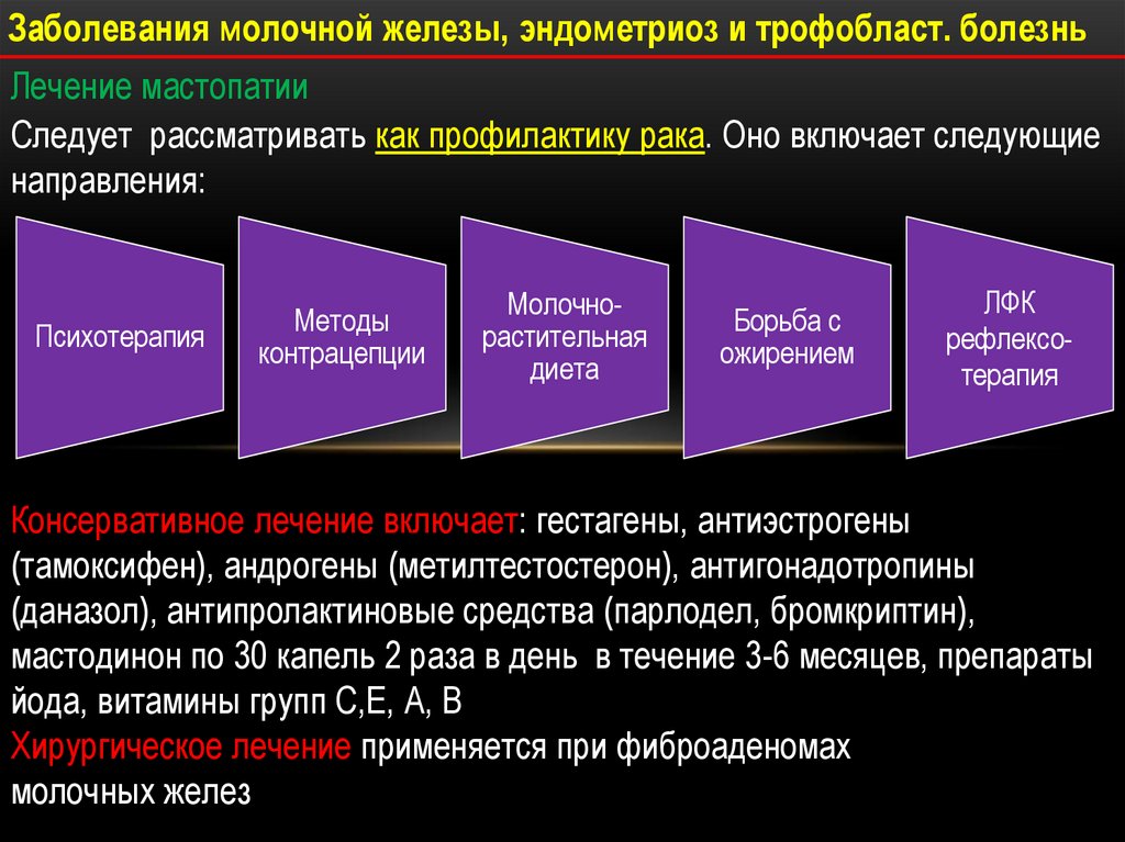 Заболевания молочной железы, эндометриоз и трофобласт. болезньЛечение мастопатии