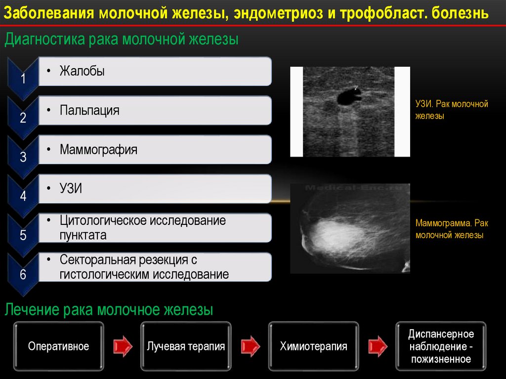 Заболевания молочной железы, эндометриоз и трофобласт. болезньДиагностика рака молочной железы