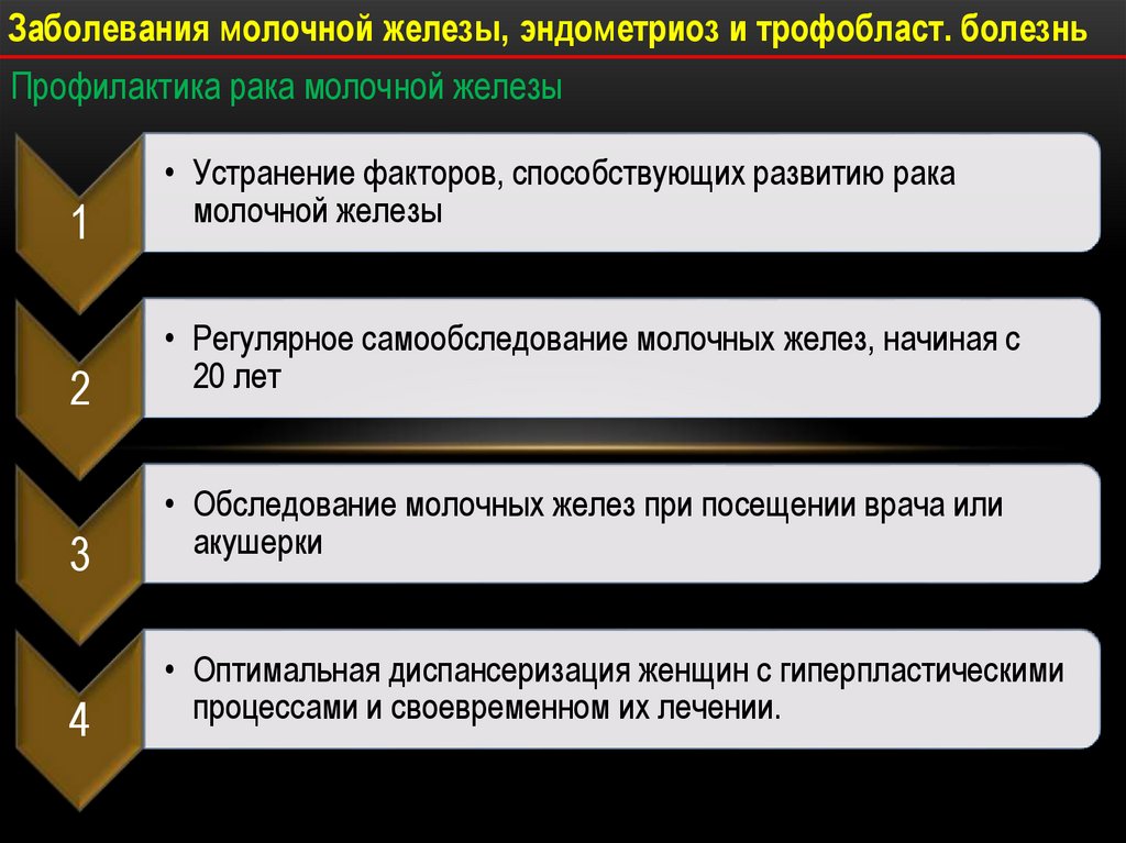 Заболевания молочной железы, эндометриоз и трофобласт. болезньПрофилактика рака молочной железы
