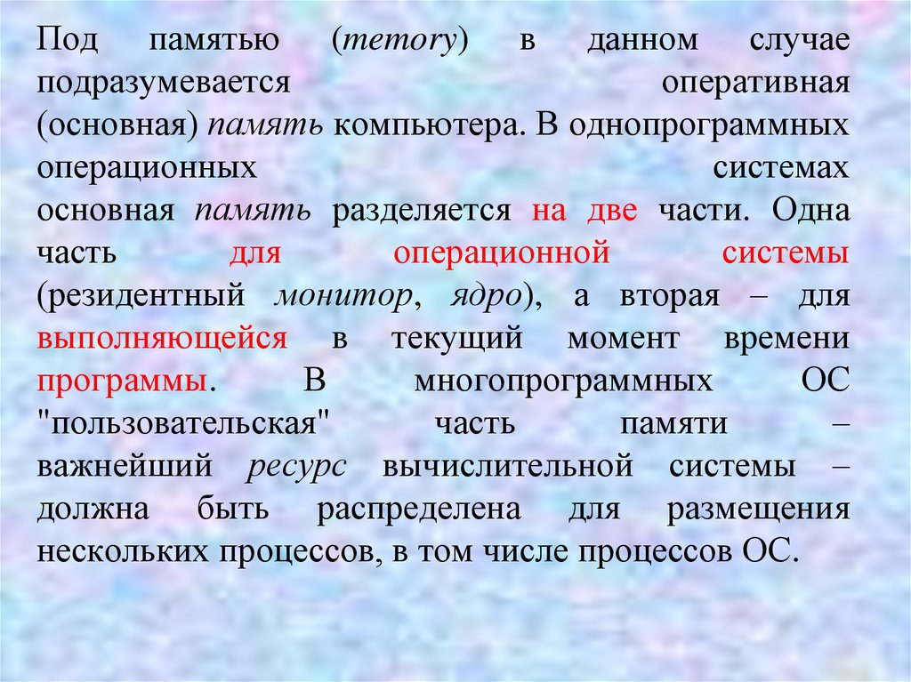 (основная) память компьютера. В однопрограммных
