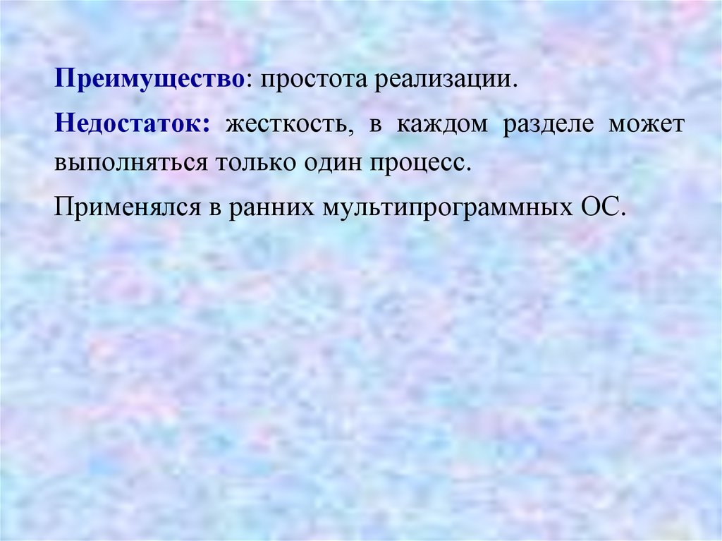 Применялся в ранних мультипрограммных ОС.