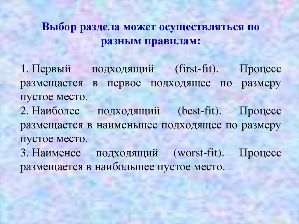 3. Наименее подходящий (worst-fit). Процесс