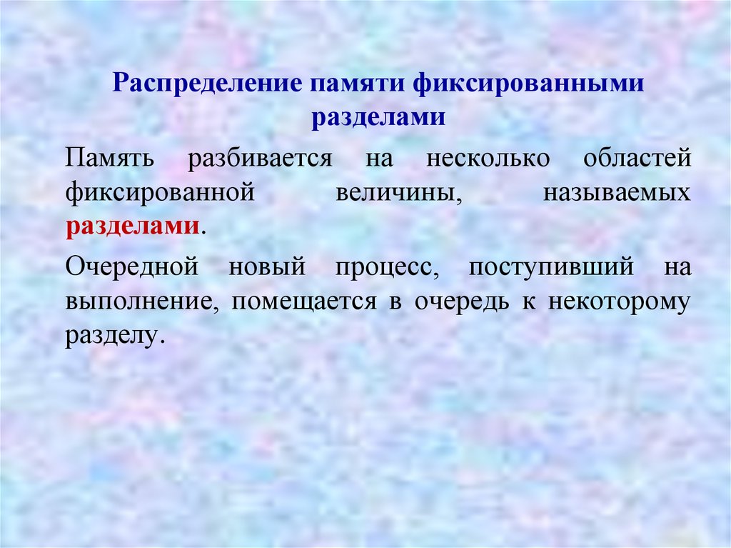Распределение памяти фиксированнымиразделами