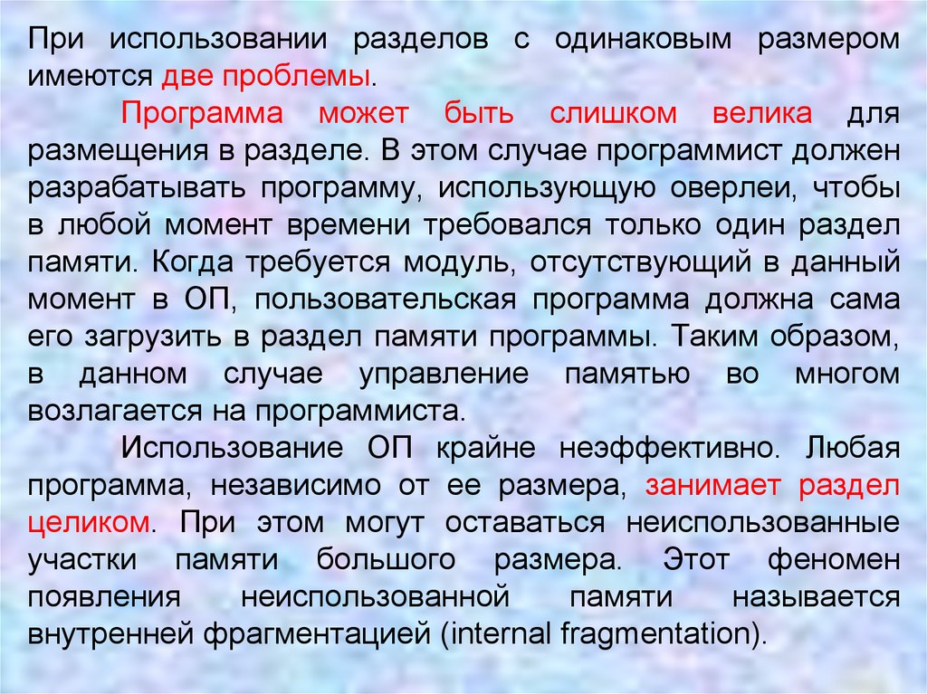 внутренней фрагментацией (internal fragmentation).