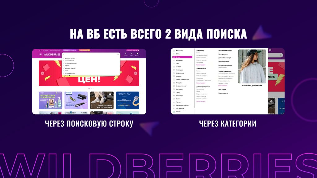 На вб есть всего 2 вида поискаЧерез поисковую строку