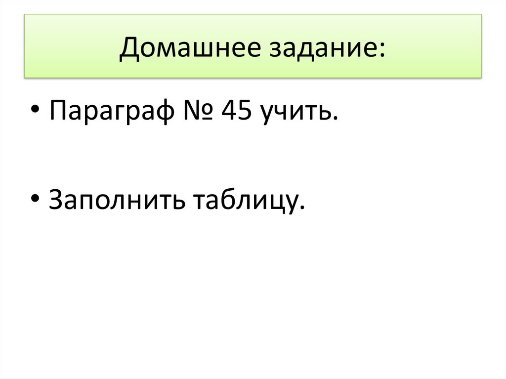 Домашнее задание:• Параграф № 45 учить.