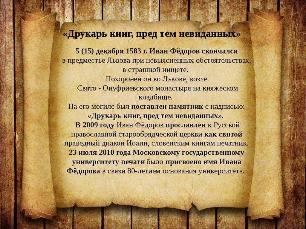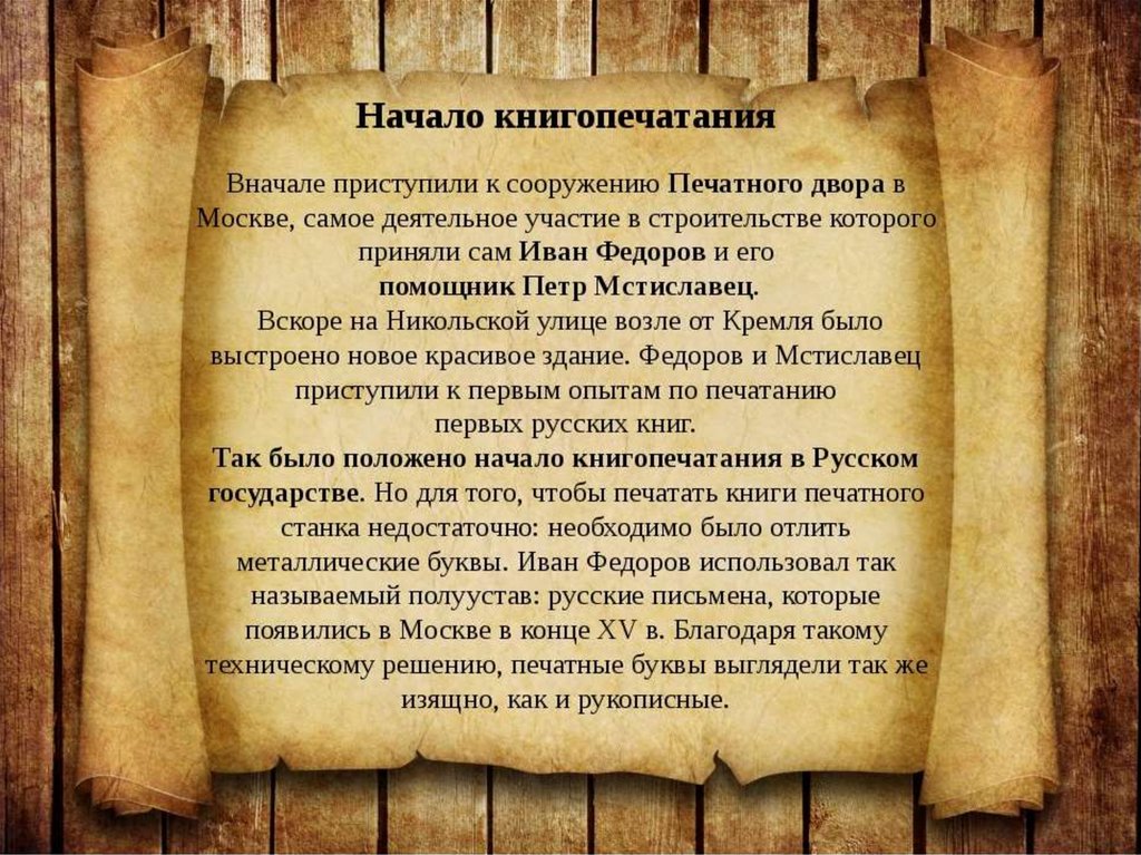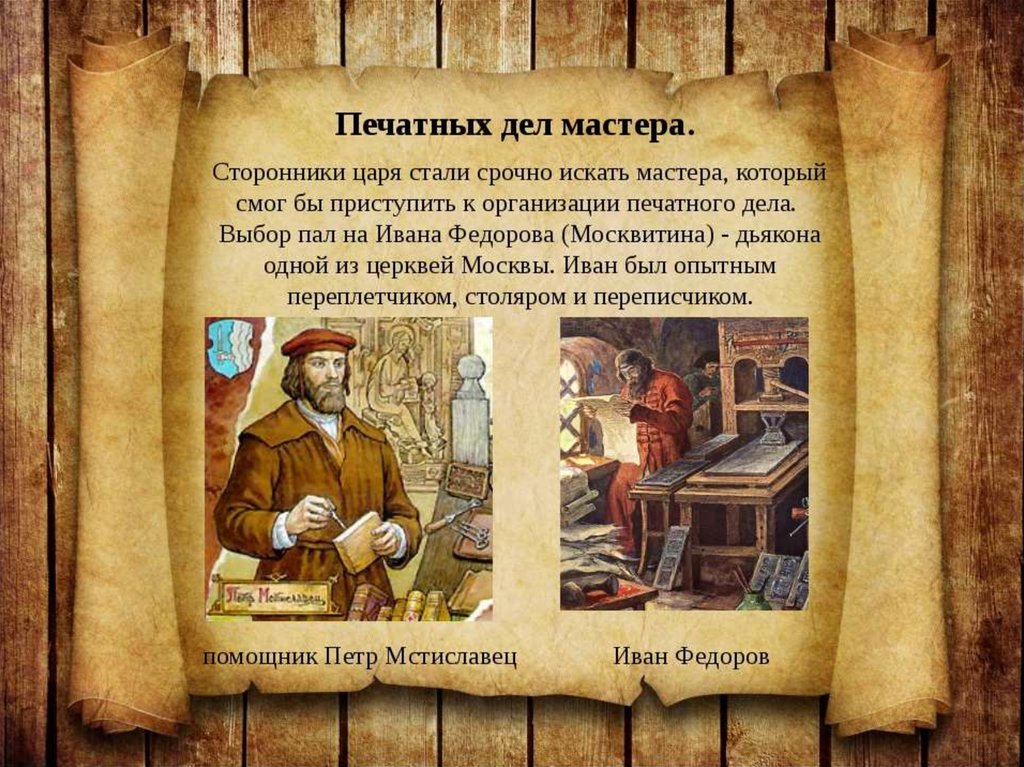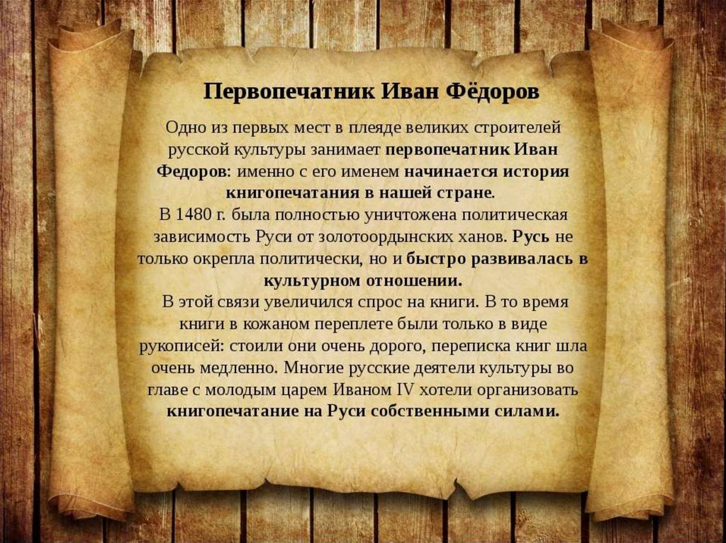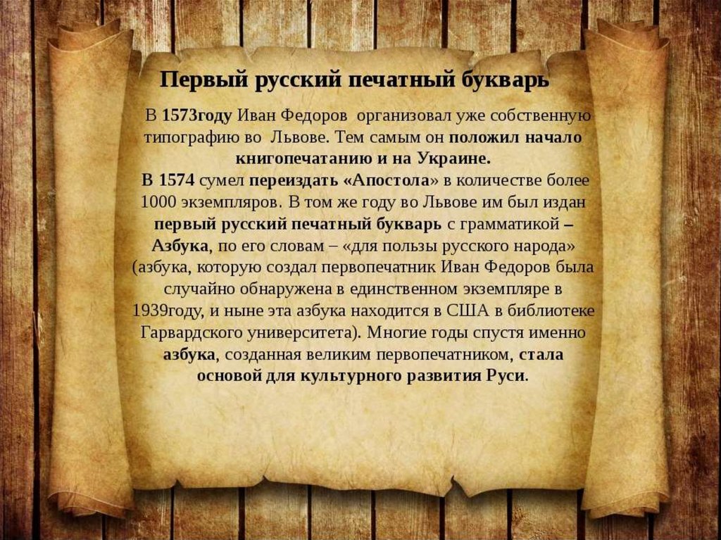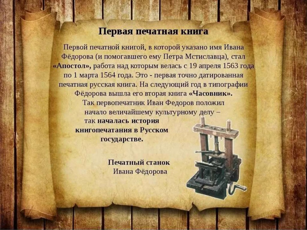 Из века в век переходя. Развитие книгопечатания на Руси. Первопечатник Иван Федоров