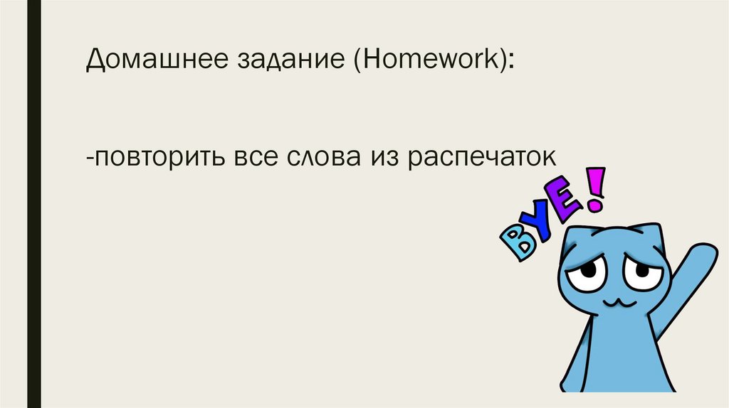 Домашнее задание (Homework):-повторить все слова из распечаток