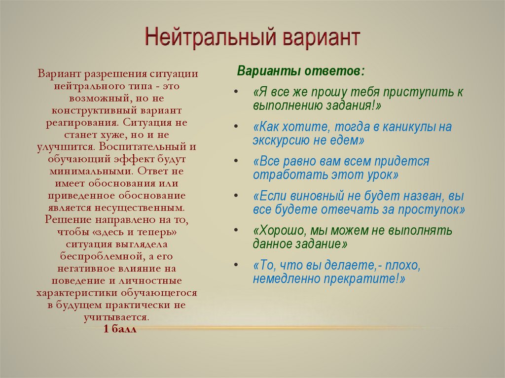 Вариант разрешения ситуациинейтрального типа - это
