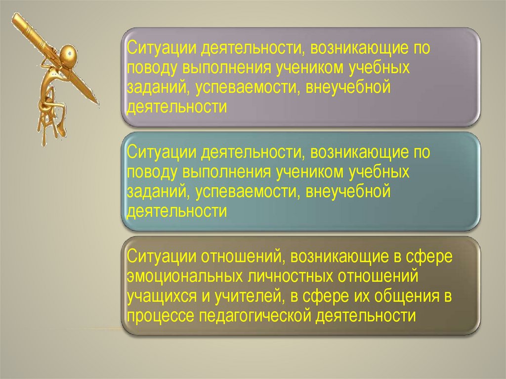 Ситуации деятельности, возникающие поповоду выполнения учеником учебных