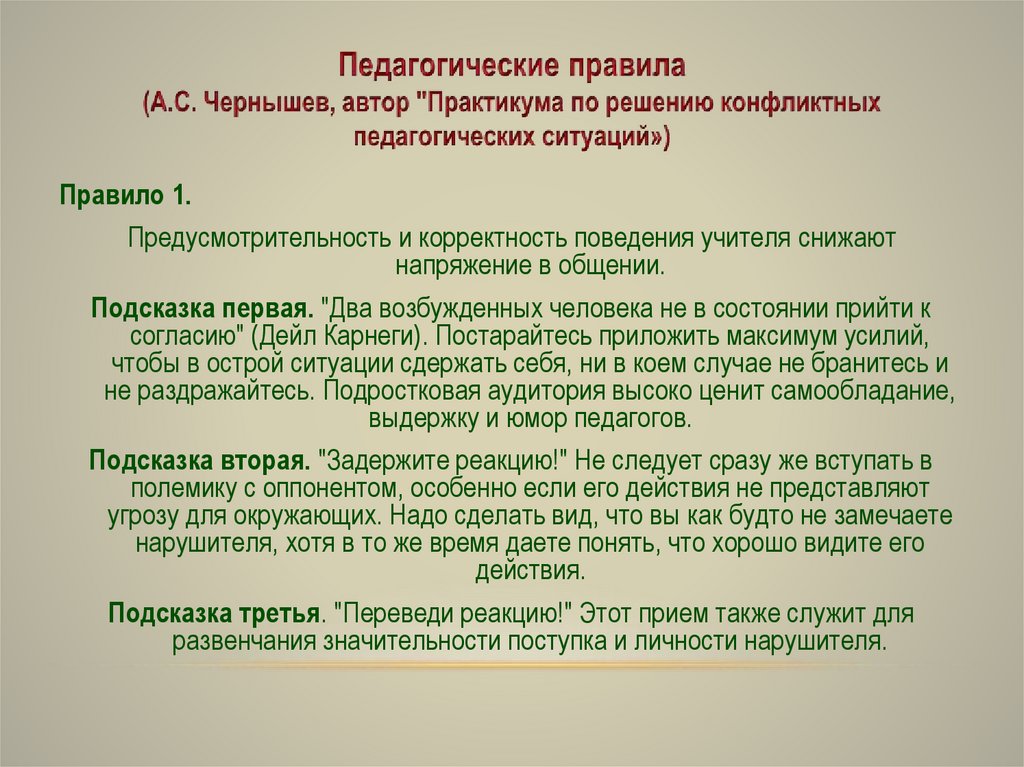 Правило 1.Предусмотрительность и корректность поведения учителя снижают