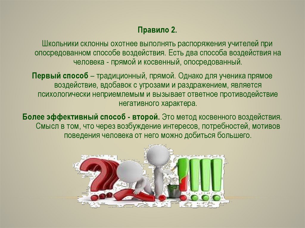 Правило 2.Школьники склонны охотнее выполнять распоряжения учителей при