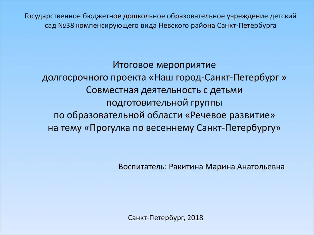 Государственное бюджетное дошкольное образовательное учреждение детскийсад №38 компенсирующего вида Невского района Санкт-Петербурга