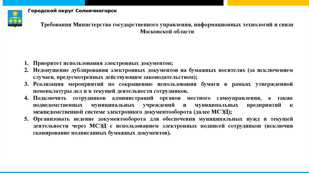 Городской округ СолнечногорскТребования Министерства государственного управления, информационных технологий и связи