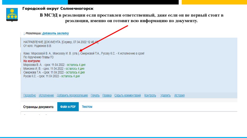 Городской округ СолнечногорскВ МСЭД в резолюции если проставлен ответственный, даже если он не первый стоит в