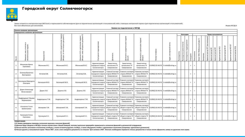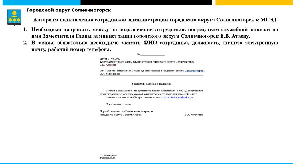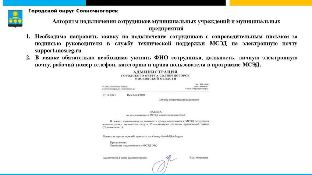 Городской округ СолнечногорскАлгоритм подключения сотрудников администрации городского округа Солнечногорск к МСЭД