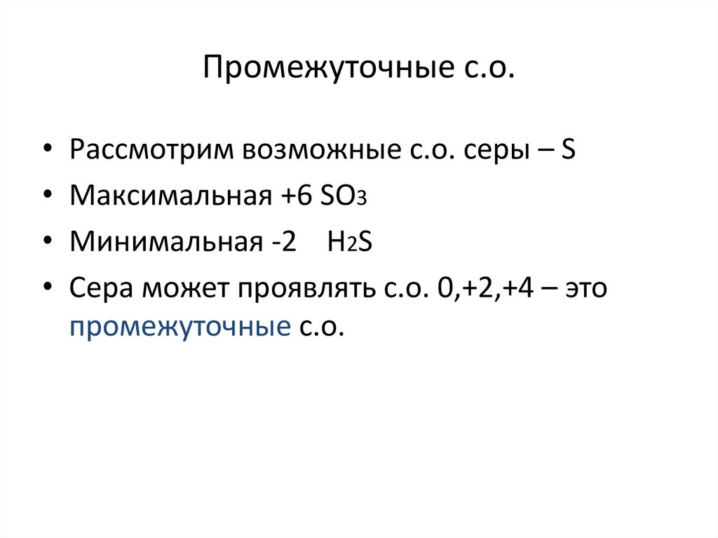 Промежуточные с.о.Рассмотрим возможные с.о. серы – S