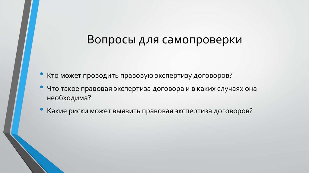 Вопросы для самопроверки• Кто может проводить правовую экспертизу договоров?