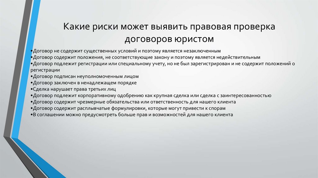 •Договор содержит чрезмерные обязательства или ответственность для нашего клиента