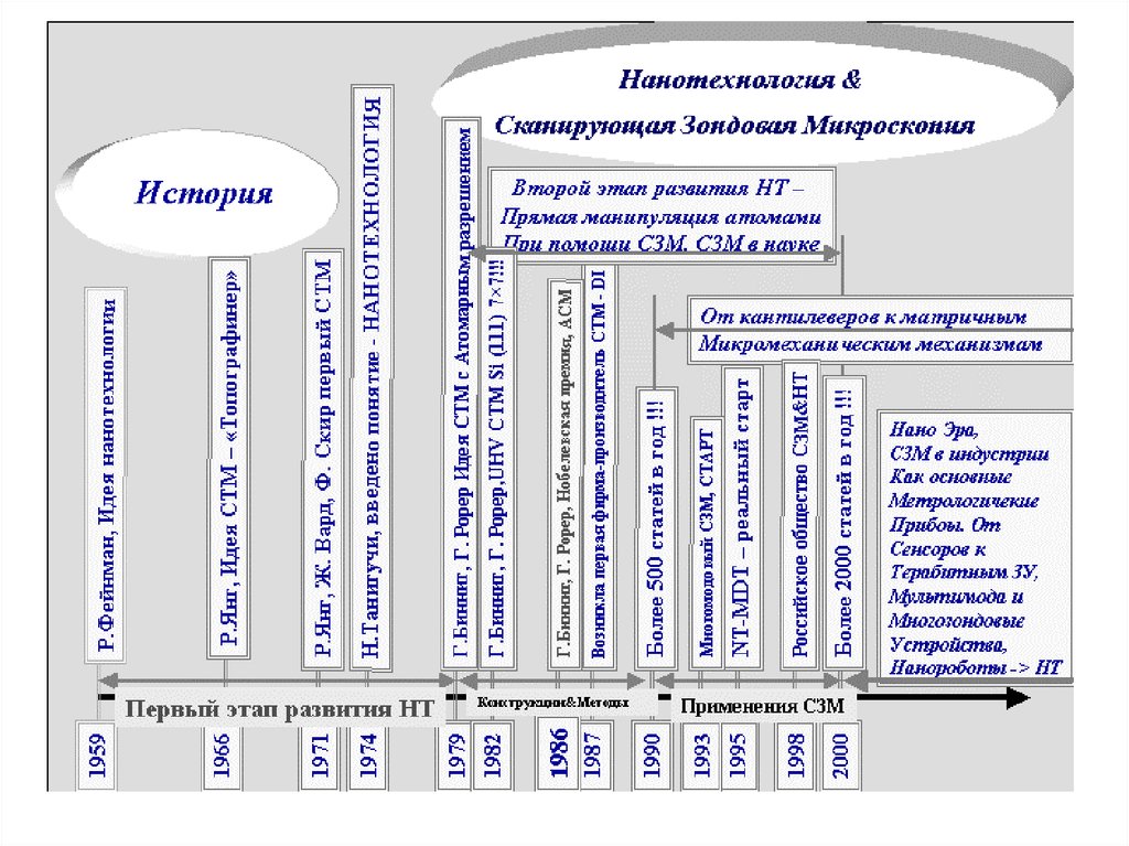 • Начало эры нанотехнологий отсчитывают от 1959года с идеи Фейнмана о миниатюризации