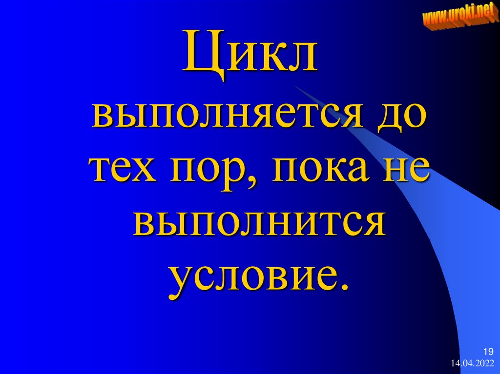 Циклвыполняется до