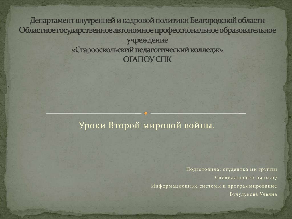 Уроки Второй мировой войны.Подготовила: студентка 11и группы