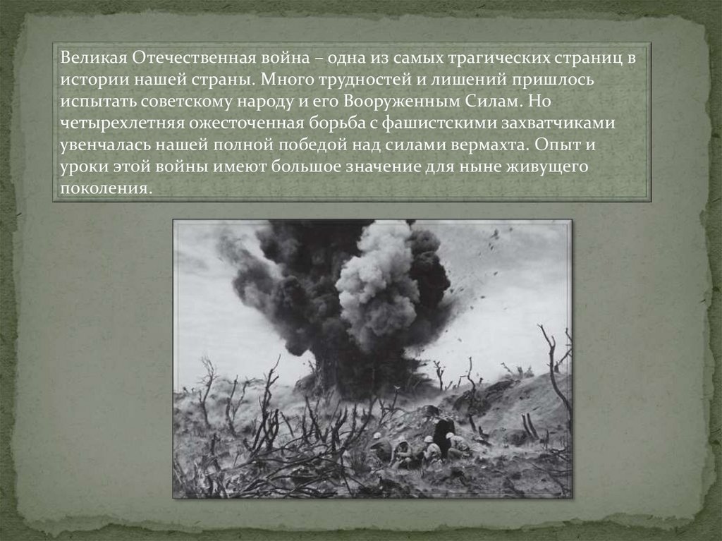Великая Отечественная война – одна из самых трагических страниц вистории нашей страны. Много трудностей и лишений пришлось