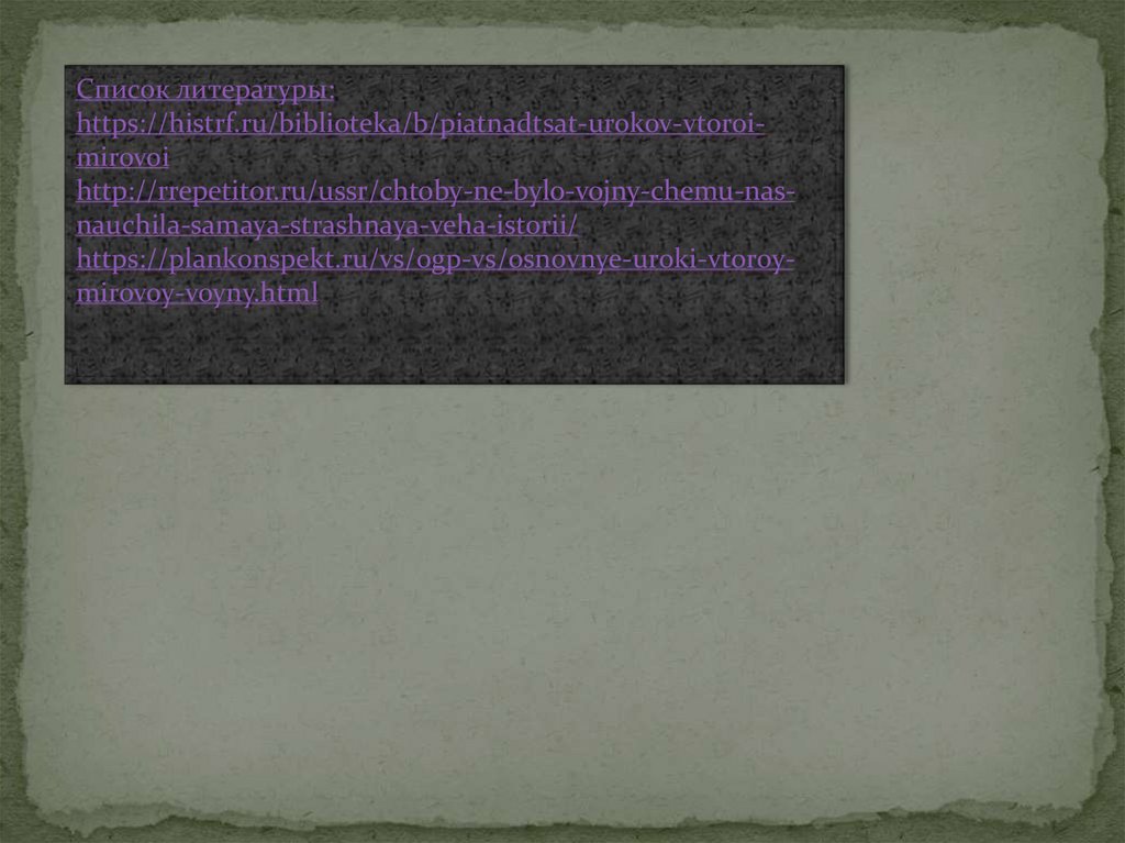 Список литературы:https://histrf.ru/biblioteka/b/piatnadtsat-urokov-vtoroimirovoi