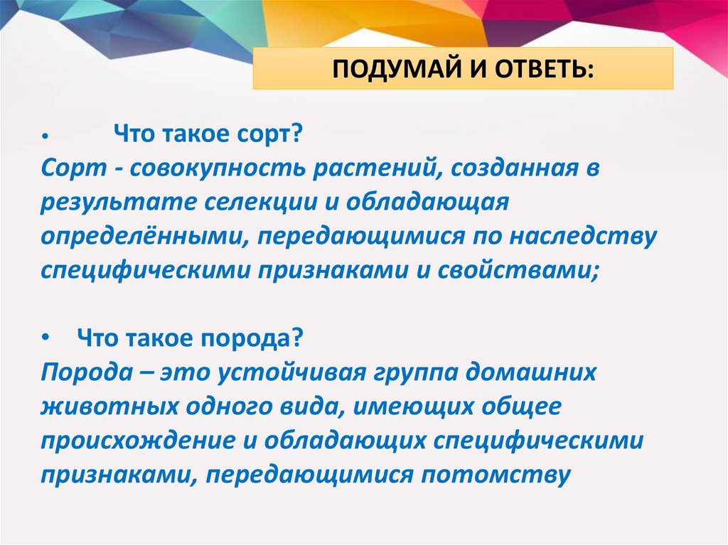 ПОДУМАЙ И ОТВЕТЬ:Что такое сорт?