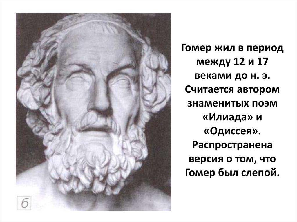Гомер жил в периодмежду 12 и 17
