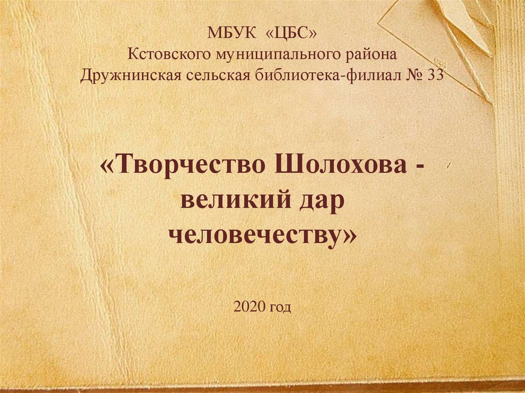 Творчество Шолохова великий дар человечеству