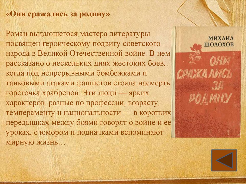 «Они сражались за родину»Роман выдающегося мастера литературы