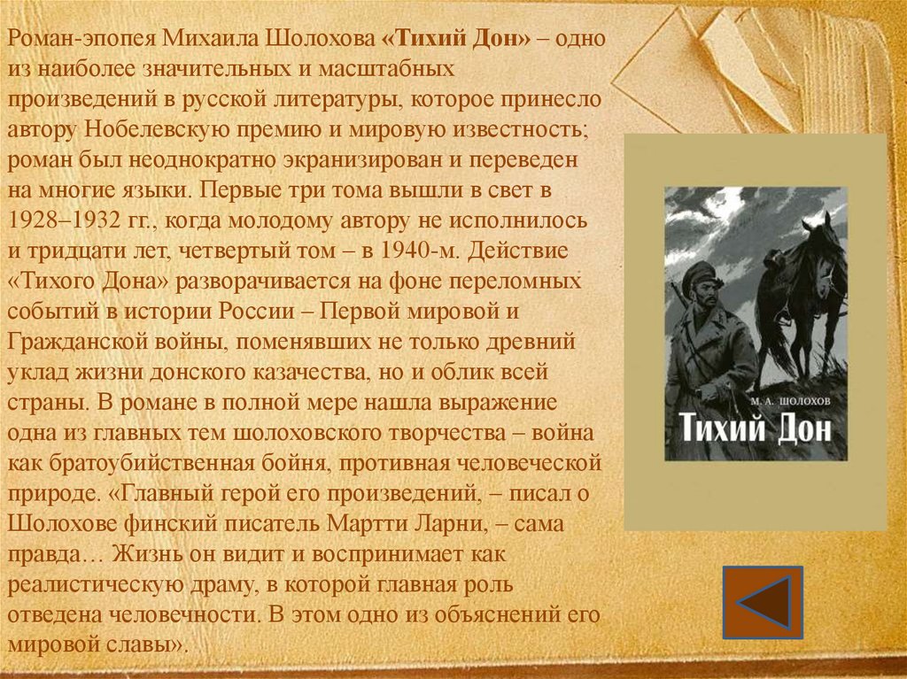 Роман-эпопея Михаила Шолохова «Тихий Дон» – одноиз наиболее значительных и масштабных