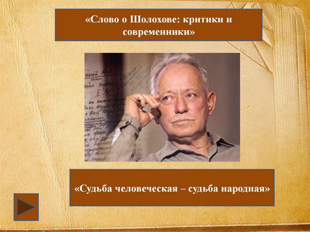 Слово о Шолохове:критики и современники