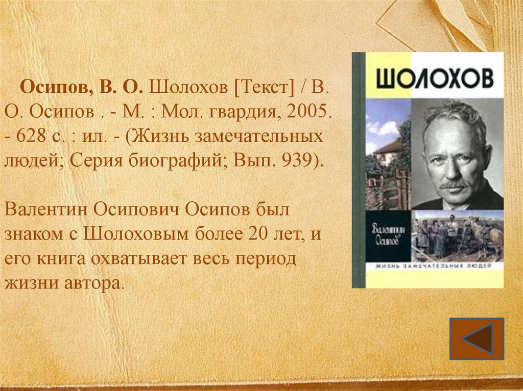 Осипов, В. О. Шолохов [Текст] / В.О. Осипов . - М. : Мол. гвардия, 2005.