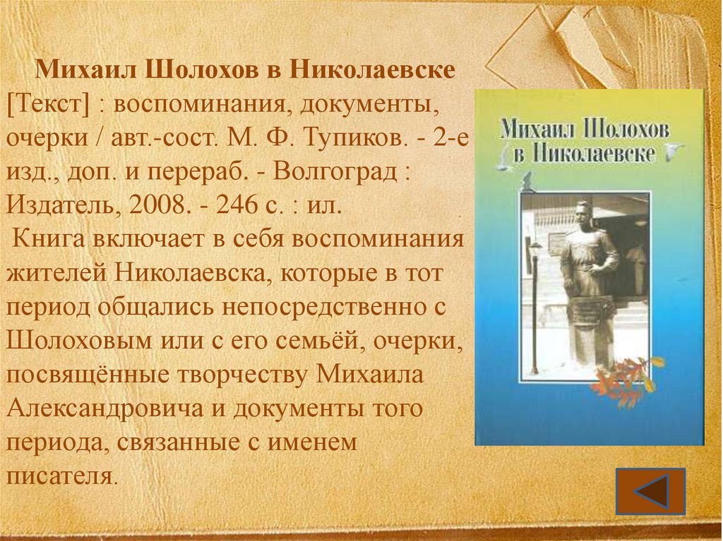 Михаил Шолохов в Николаевске[Текст] : воспоминания, документы,