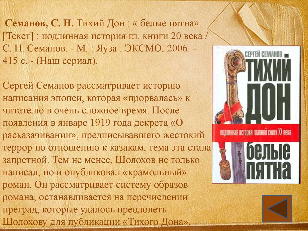 Семанов, С. Н. Тихий Дон : « белые пятна»[Текст] : подлинная история гл. книги 20 века /