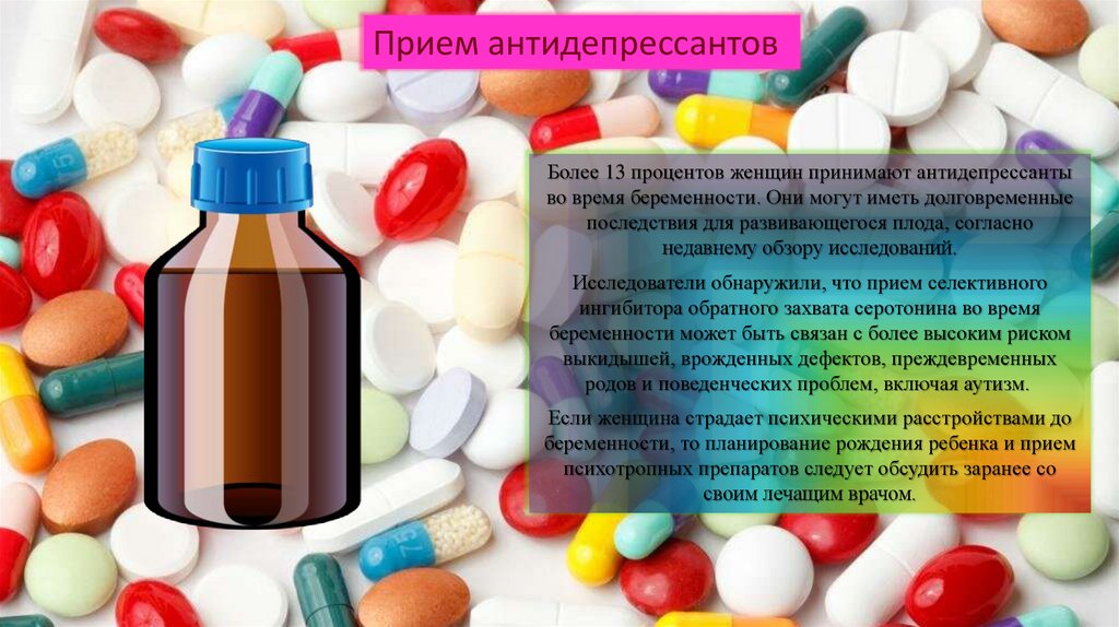 Прием антидепрессантовБолее 13 процентов женщин принимают антидепрессанты
