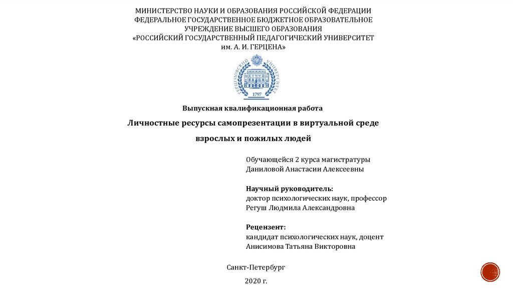 «РОССИЙСКИЙ ГОСУДАРСТВЕННЫЙ ПЕДАГОГИЧЕСКИЙ УНИВЕРСИТЕТ