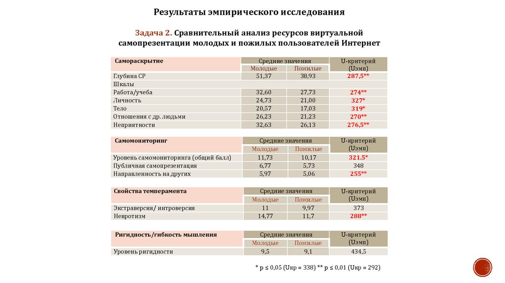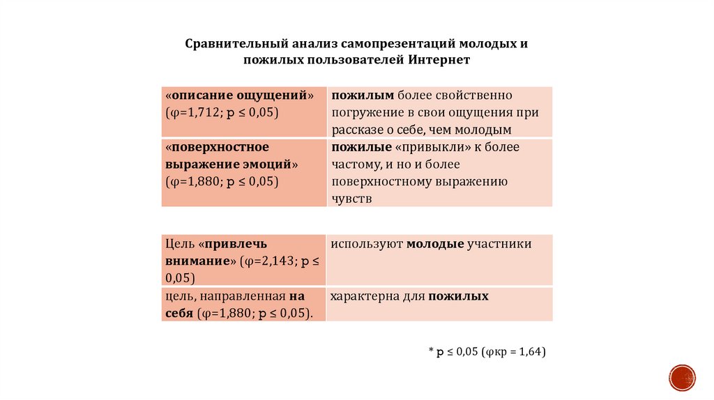 3. Молодые и пожилые люди, дающие онлайнсамопрезентацию, могут иметь различия в