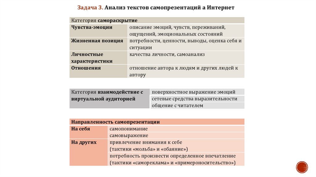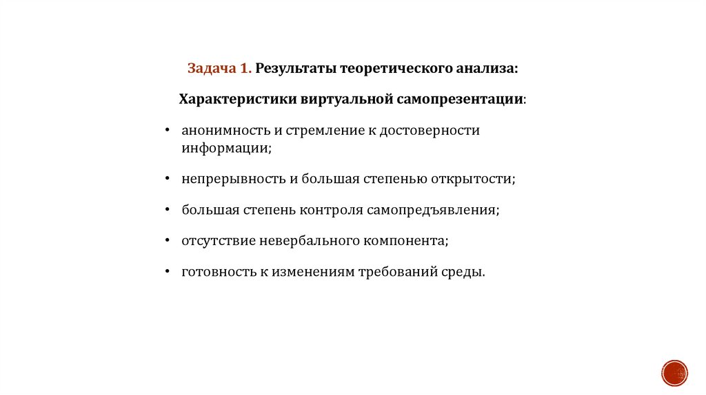 Задача 1. Результаты теоретического анализа:Характеристики виртуальной самопрезентации:
