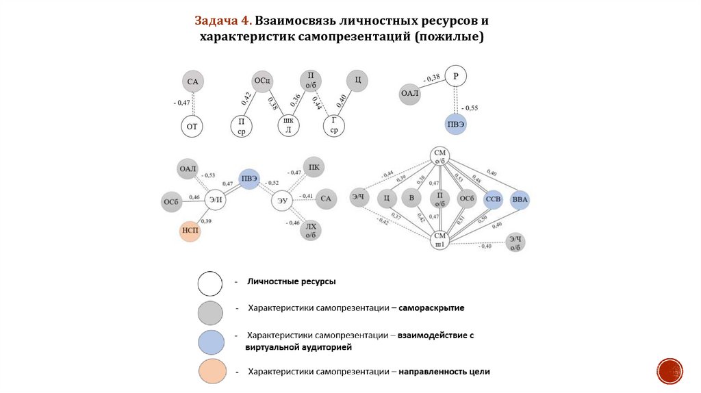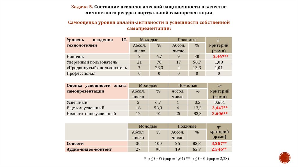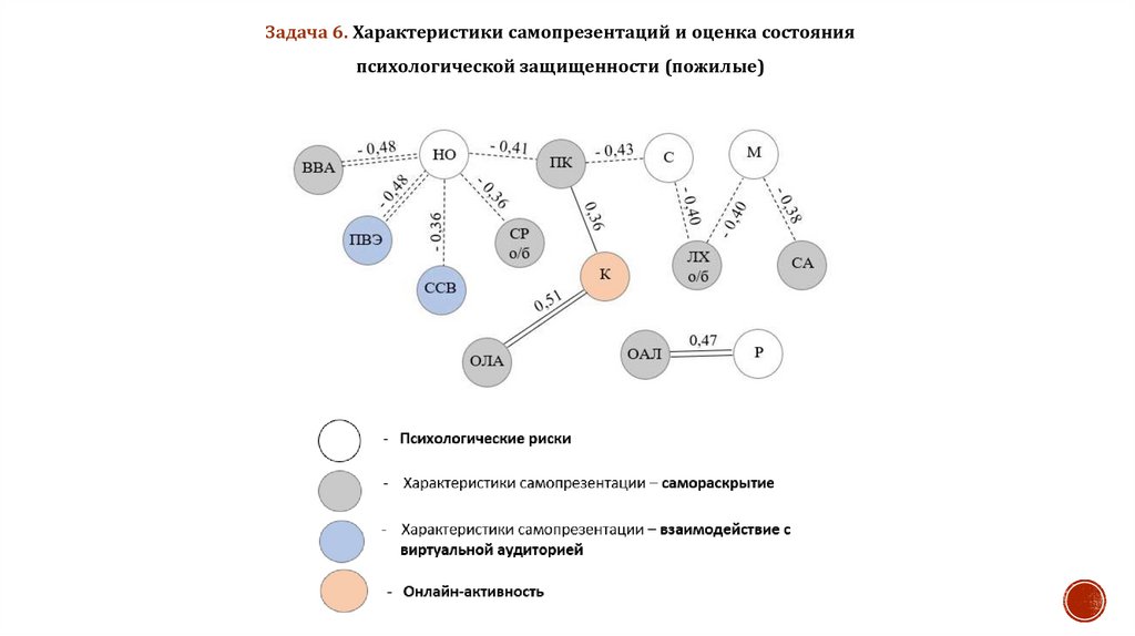 Задача 6. Характеристики самопрезентаций и оценка состоянияпсихологической защищенности (пожилые)