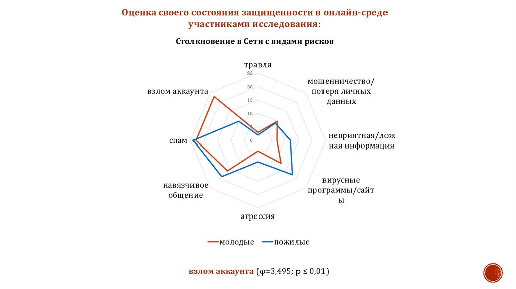 взлом аккаунта (φ=3,495; p ≤ 0,01)
