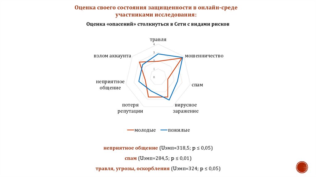 Оценка своего состояния защищенности в онлайн-средеучастниками исследования: