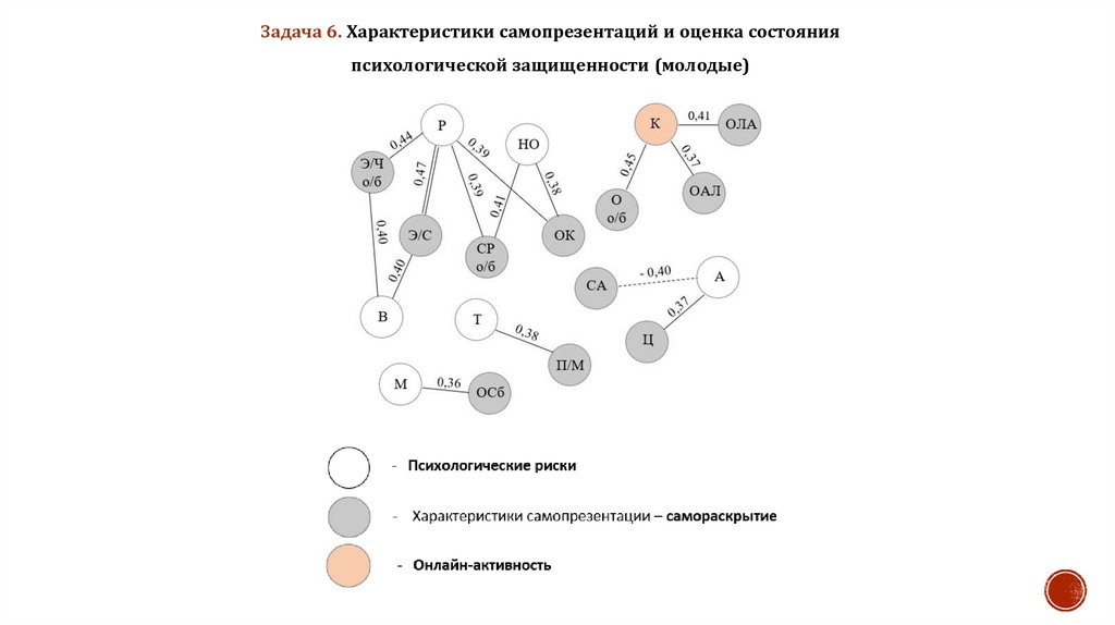 Задача 6. Характеристики самопрезентаций и оценка состоянияпсихологической защищенности (молодые)