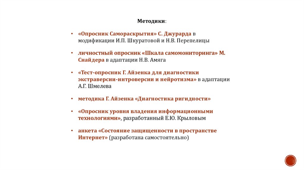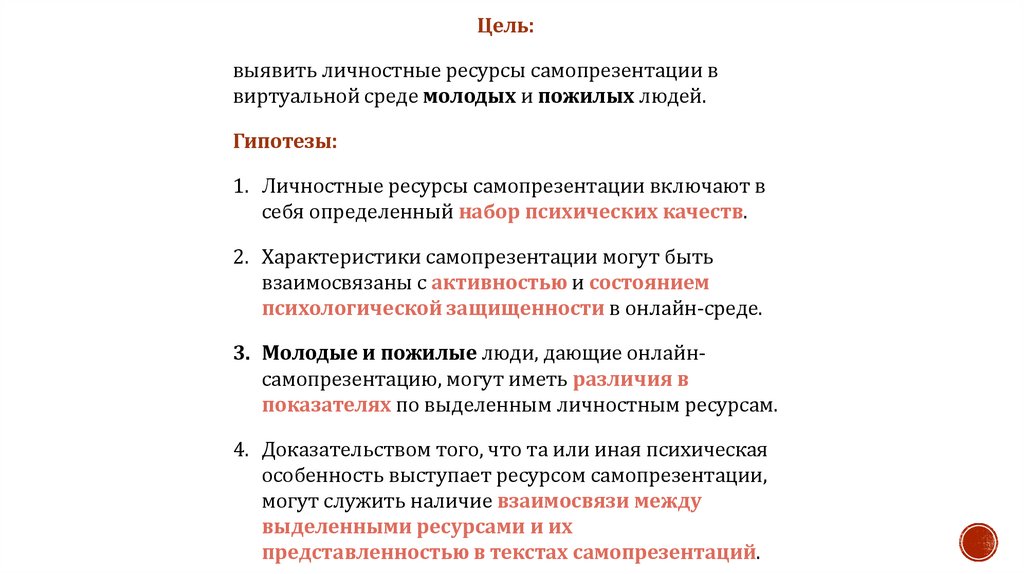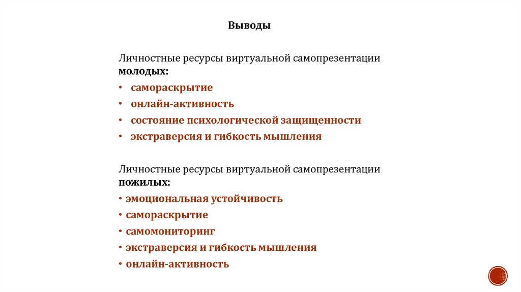 ВыводыЛичностные ресурсы виртуальной самопрезентации