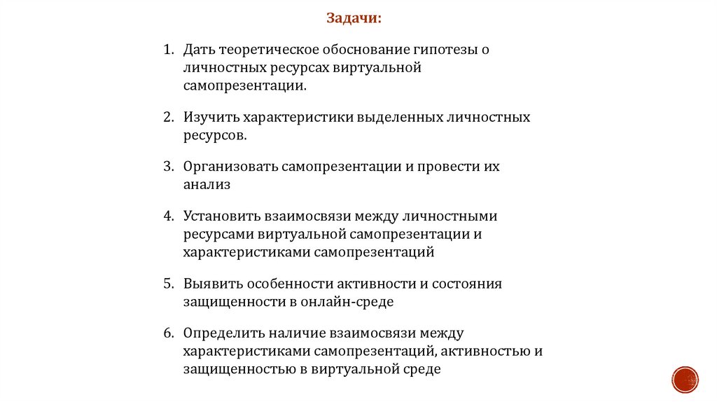 Задачи:1. Дать теоретическое обоснование гипотезы о