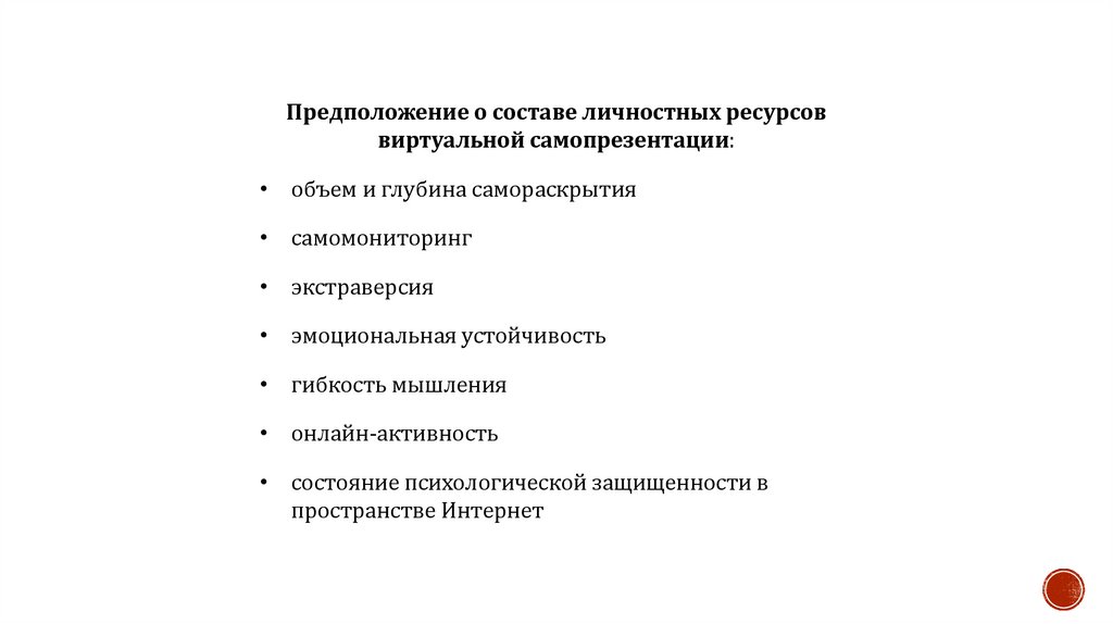 Предположение о составе личностных ресурсоввиртуальной самопрезентации: